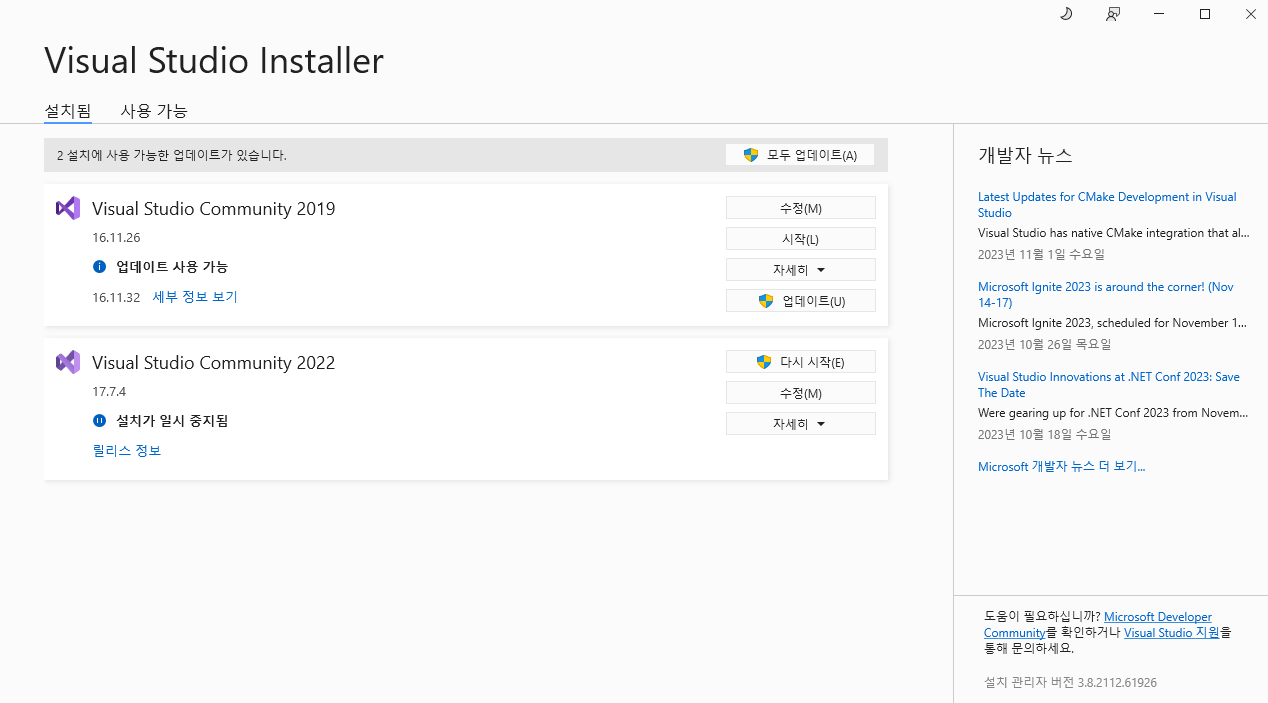 2. visual studio installer에 들어간다